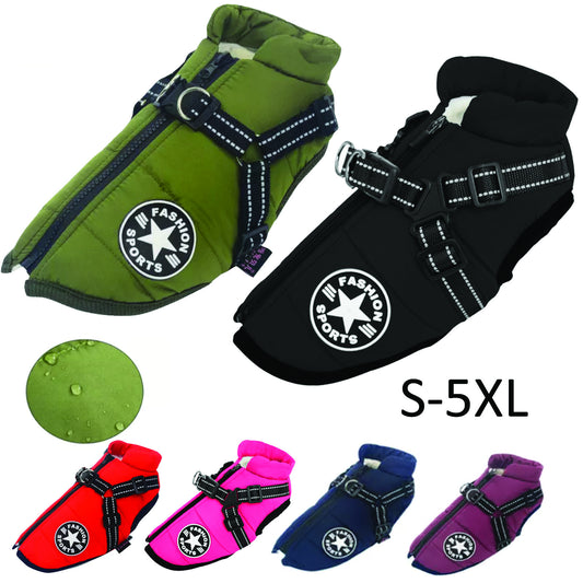 • Dog Coat Waterproof with Harness Jacket Raincoat Winter Zip Coats Pet Hole Warm